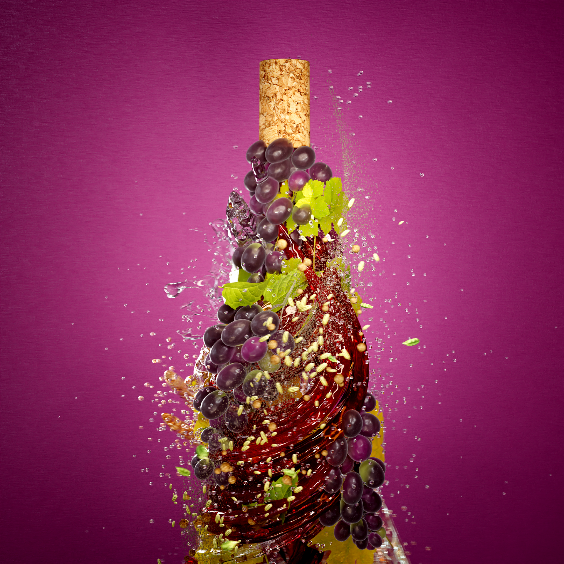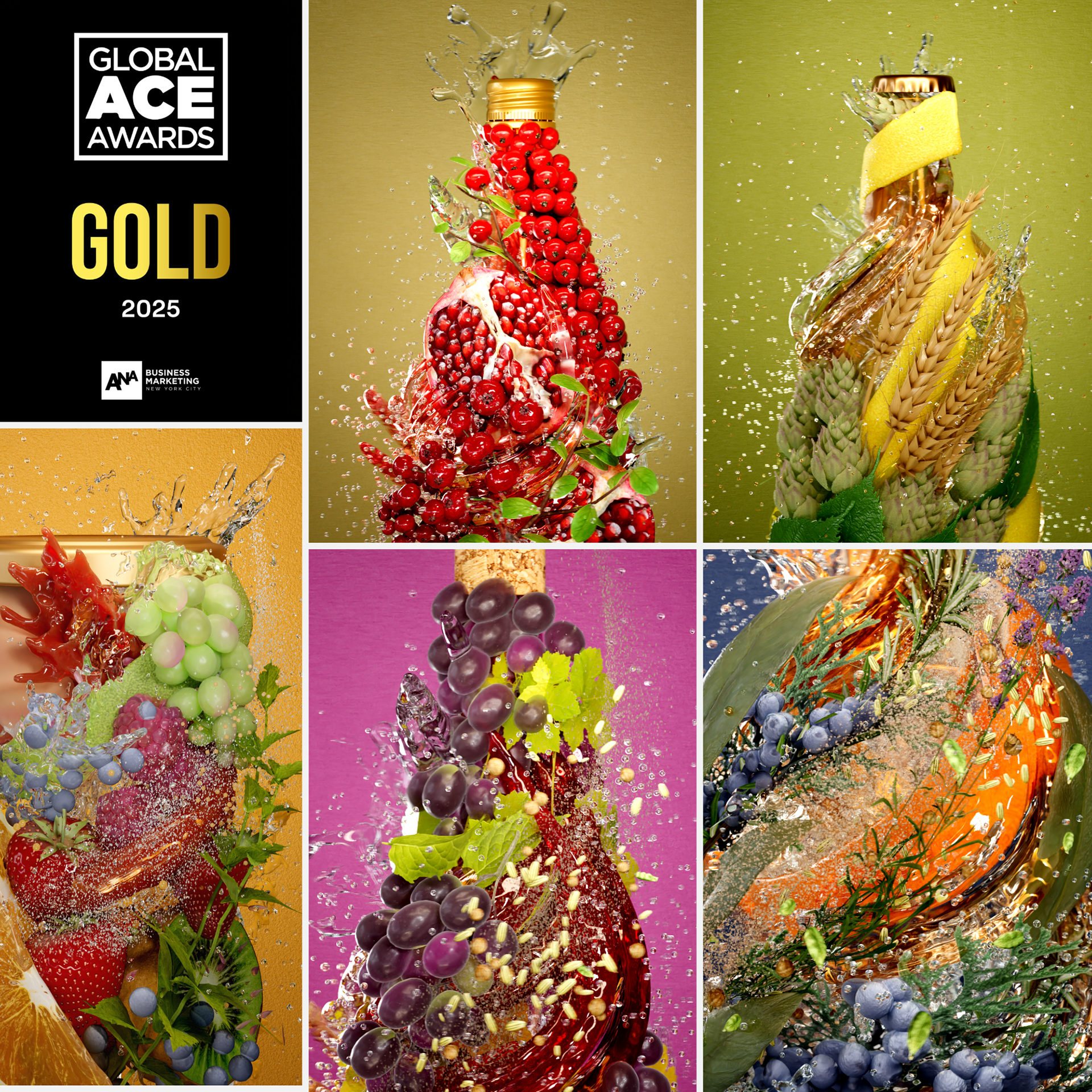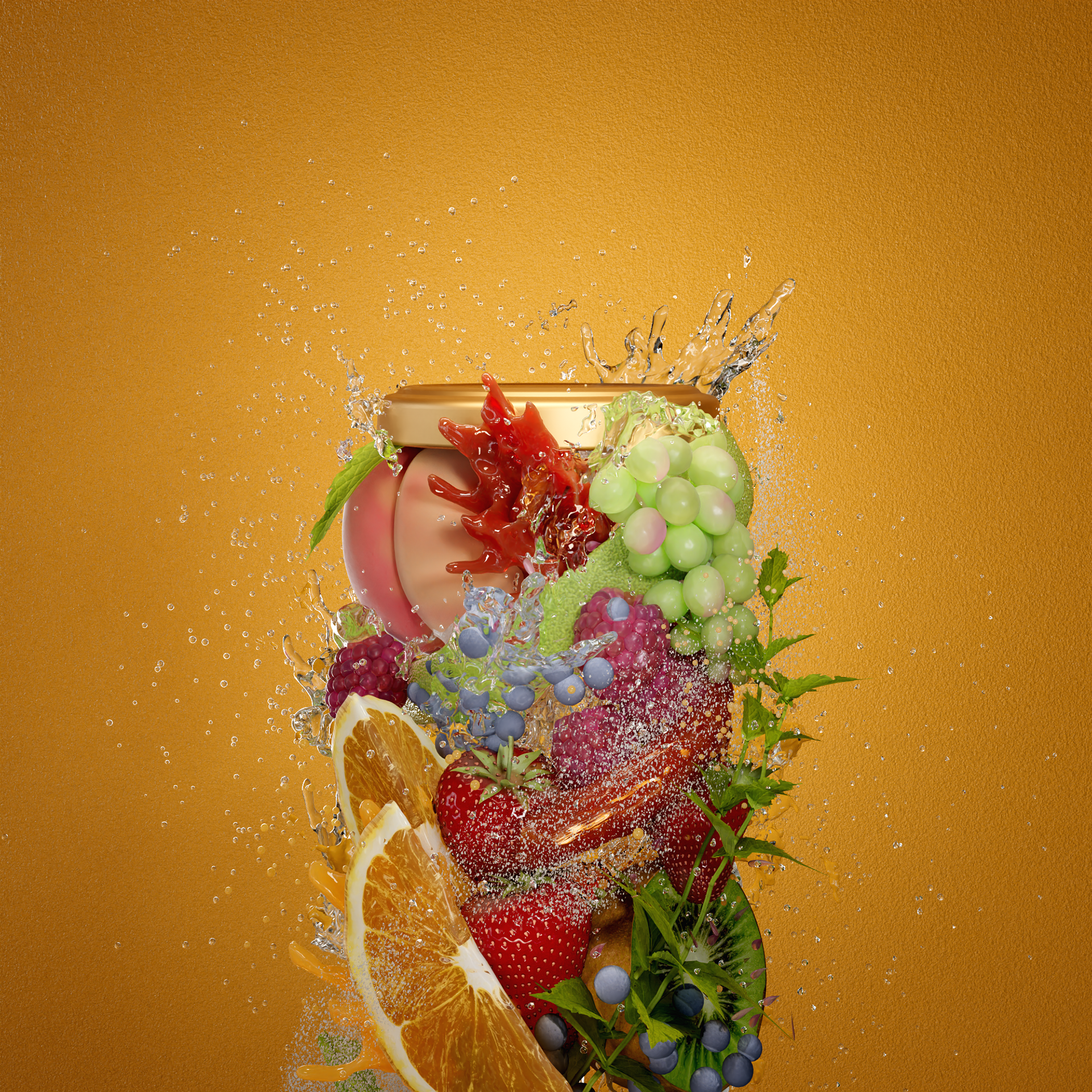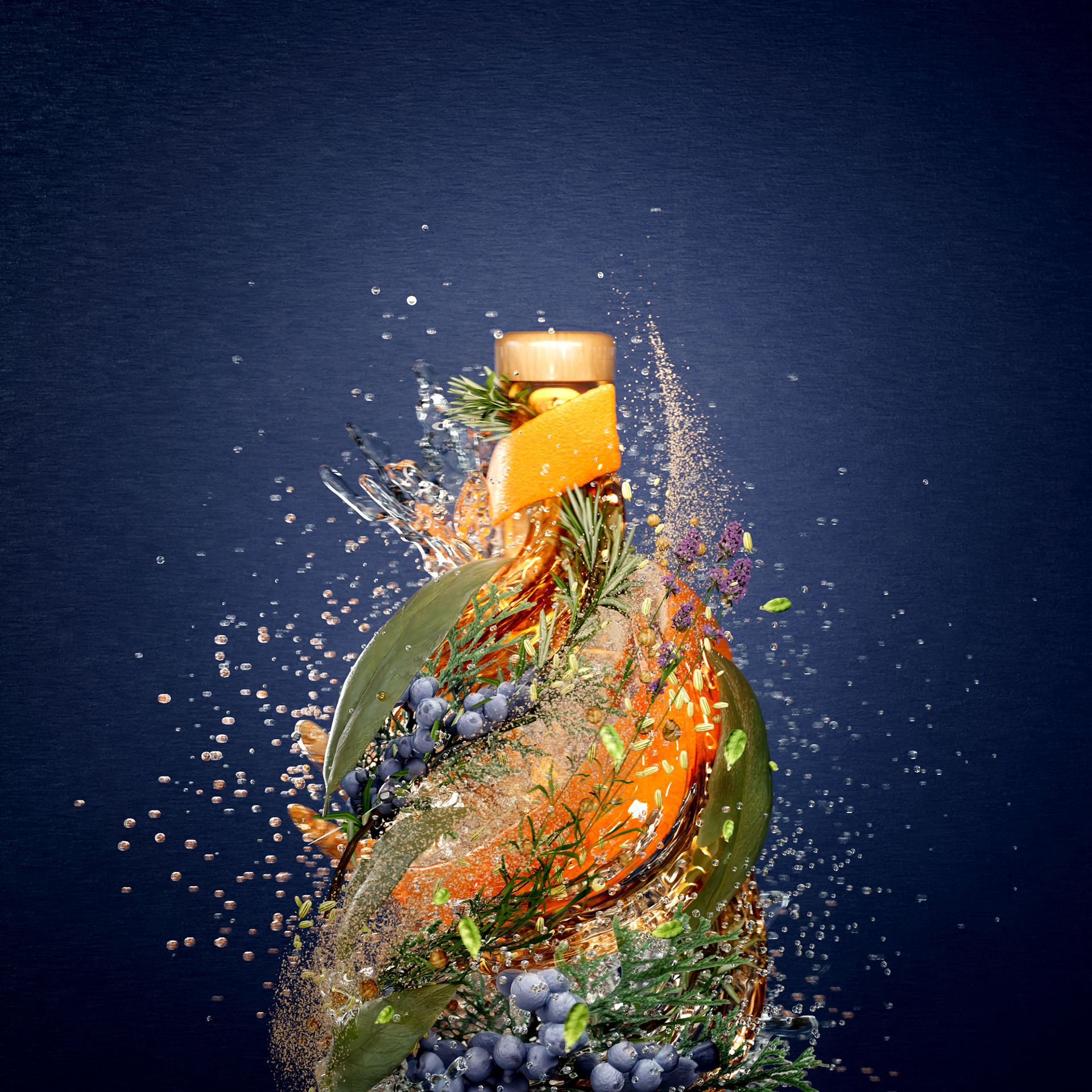 A combination of splashes, suspended elements and fine detail was used to create a sense of controlled energy, reinforcing the relationship between product and preservation.