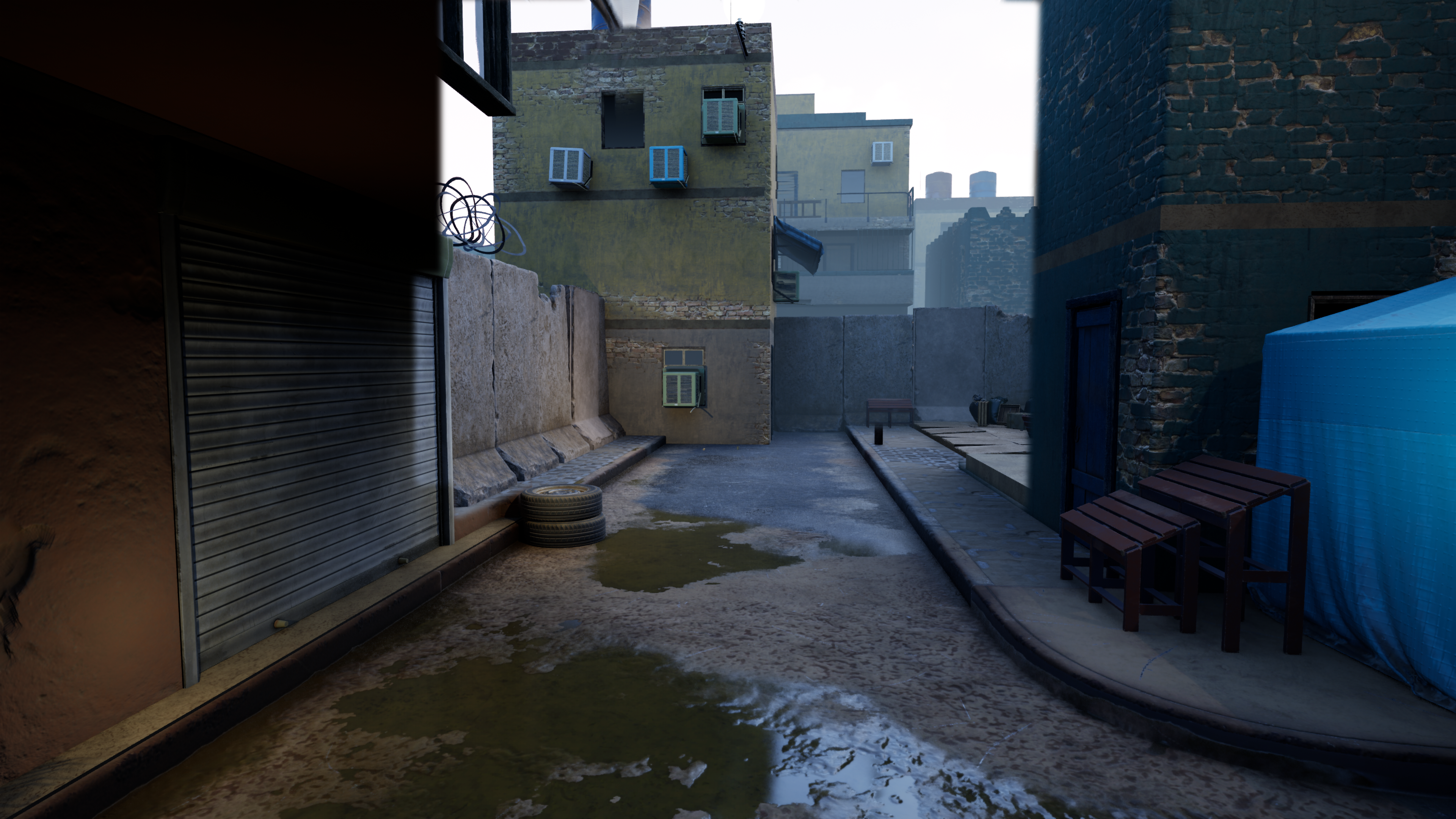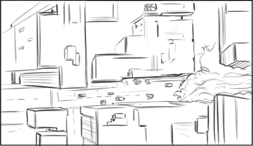 To maintain visual consistency, I rendered images out of Unreal Engine and created projection plates in Photoshop, enabling the camera projection. This method proved effective for the project's two shots: a point-of-view and an overhead view. Additionally, I paid close attention to the projected elements and separated elements to minimize visual distortions.